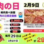 - 令和8年2月 肉(29)の日 焼肉食べ放題肉の日限定価格