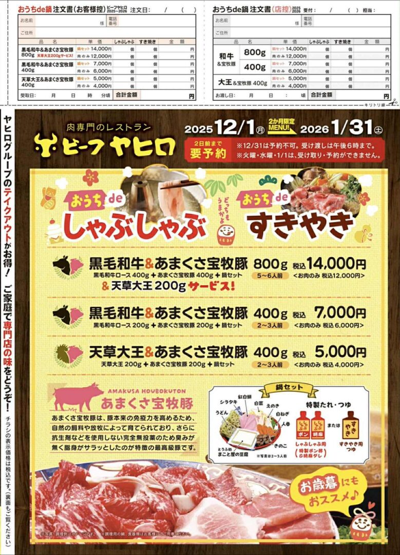 「肉専門のレストランビーフヤヒロ」おうちdeすき焼き・しゃぶしゃぶ